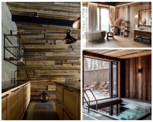 Российские дизайнеры часто используют амбарную доску именно там, где важно избежать эффекта «нового ремонта». В жилых интерьерах, загородных домах, общественных пространствах, которые должны выглядеть естественно с первого дня.