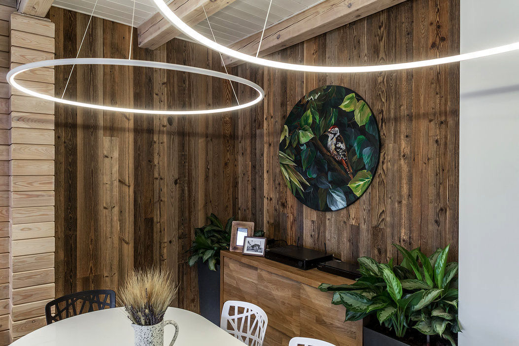 Российский архитектор Сергей Эстрин в одном из интервью для Salon Interior отмечал, что дерево хорошо работает именно в роли фона, потому что позволяет менять интерьер деталями, не трогая основу.